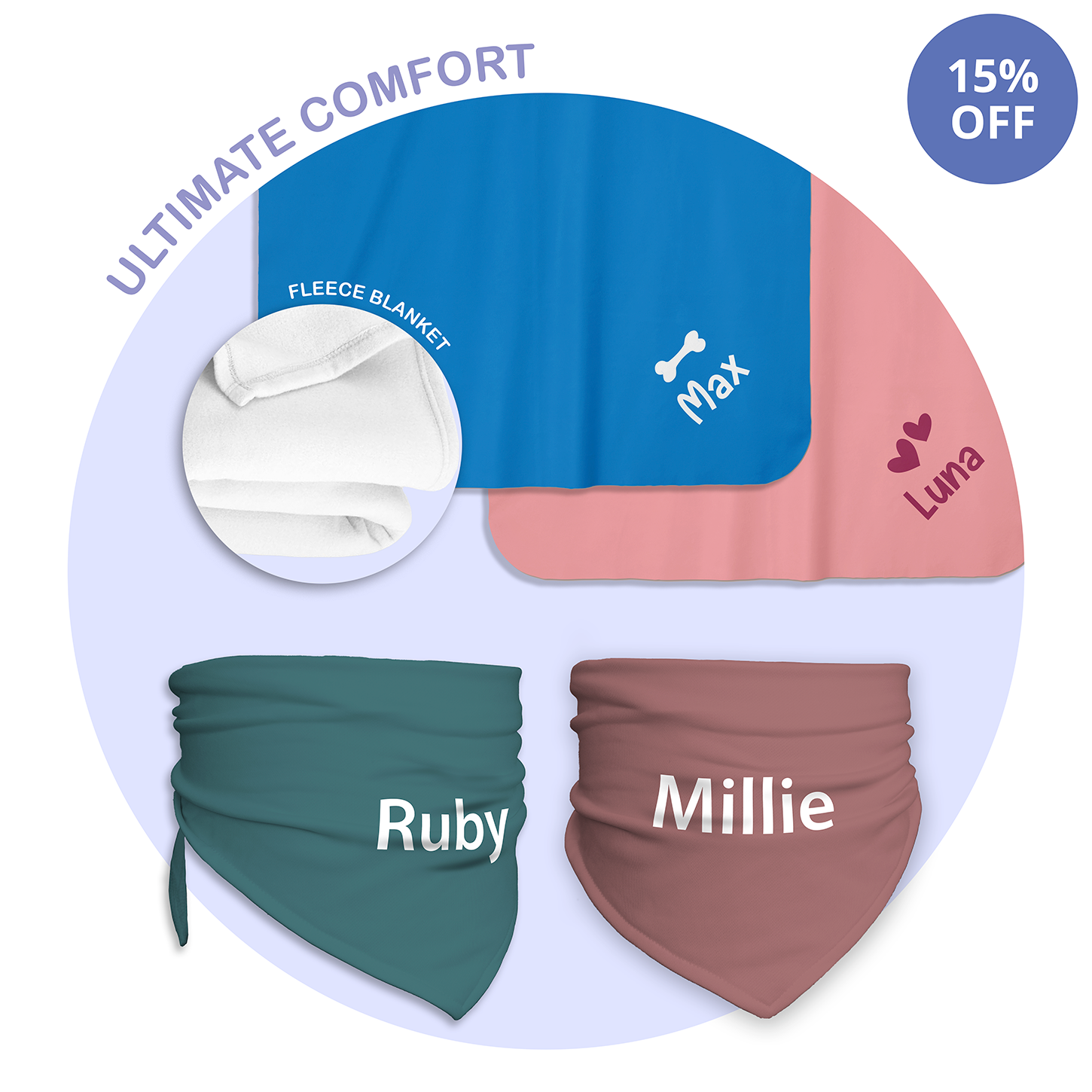 Custom Pet Accessories Bundle: Personalised Scarf & Fleece Blanket for Dogs & Cats
