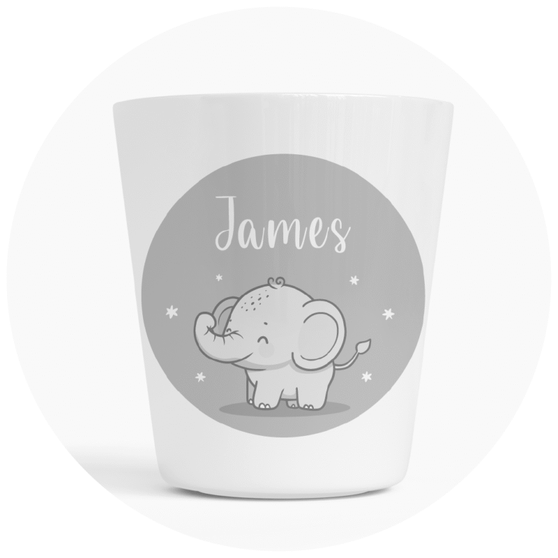 A. Our personalised cups are crafted from a high-quality, durable, and unbreakable plastic & melamine blend. They are also BPA-free, ensuring they are completely safe for your child to use.