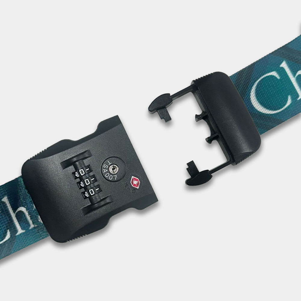 Custom suitcase straps, also known as belts, are typically adjustable; made of durable materials such as nylon or polyester, designed to wrap around luggage to keep it securely closed during travel.