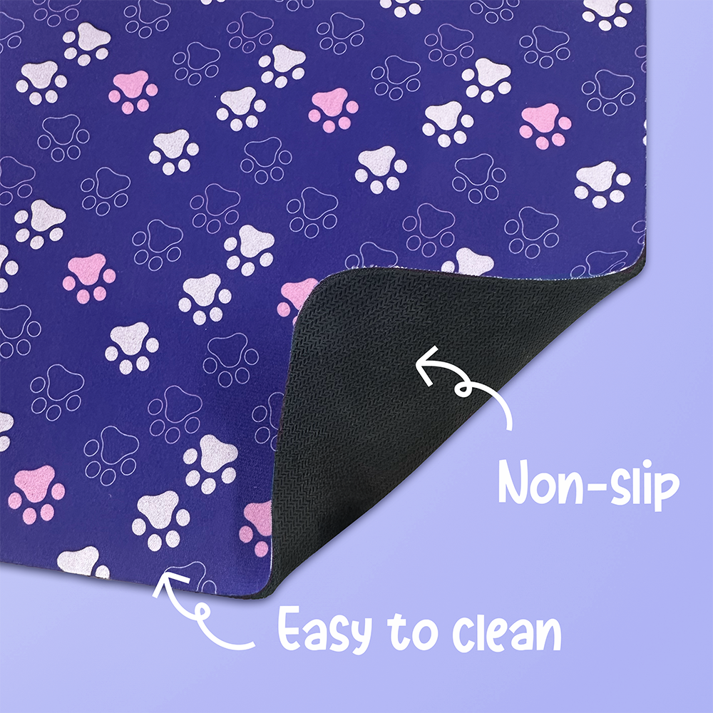 - They are durable and easy-to-clean, make them the perfect solution for pet owners who want to maintain a clean and hygienic home. Maintaining a clean and hygienic living environment is crucial for both your pet’s health and your own. When pets eat directly off the floor, it can lead to a host of problems, such as bacterial contamination, food stains, and unpleasant odours. Additionally, spilled water or food can seep into your flooring, causing damage and potential mould growth. By using placemats for pets, you can prevent these issues and ensure that your floors stay clean and in good condition.