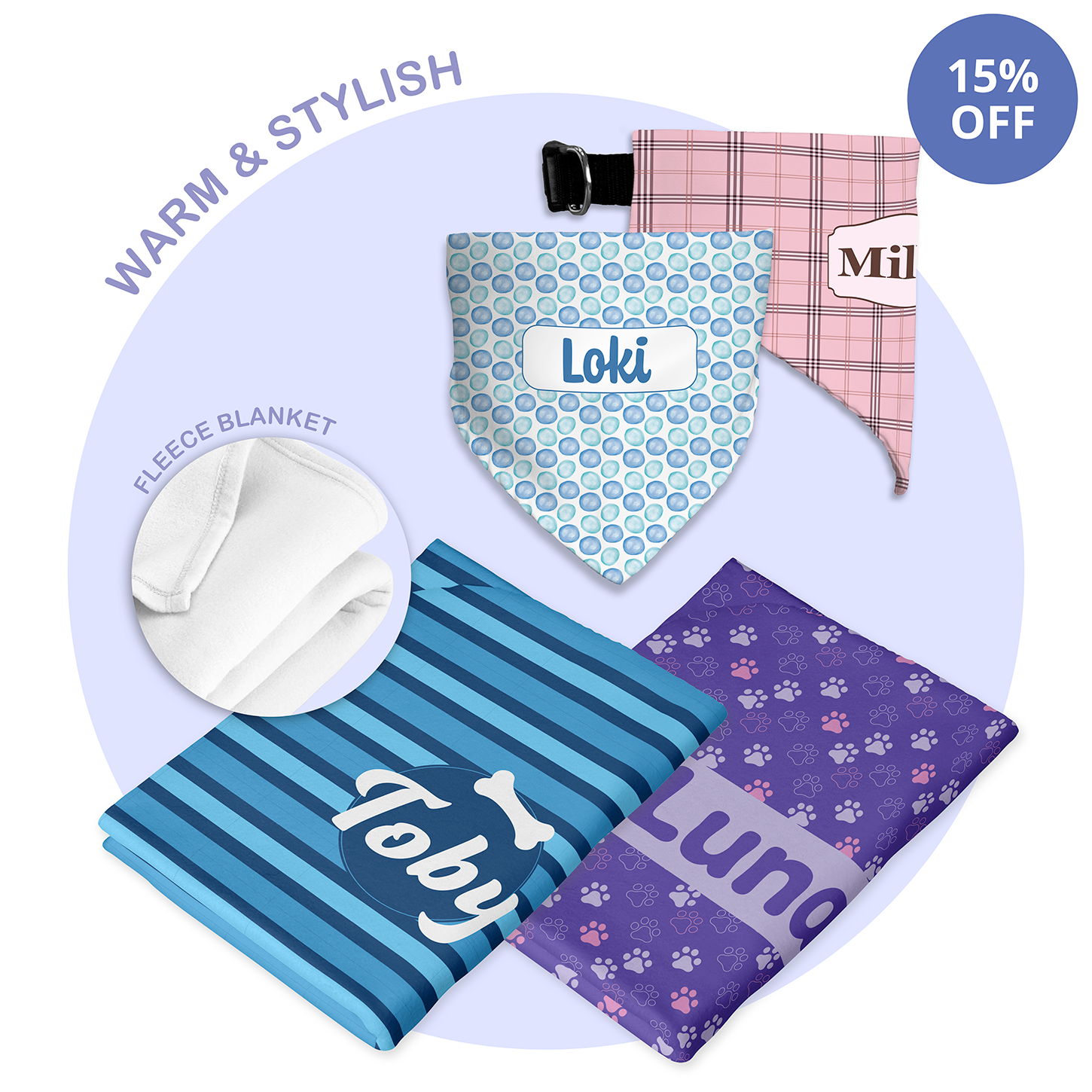 A: Yes! While marketed for puppies, any dog at any age will love their personalised blanket and scarf.